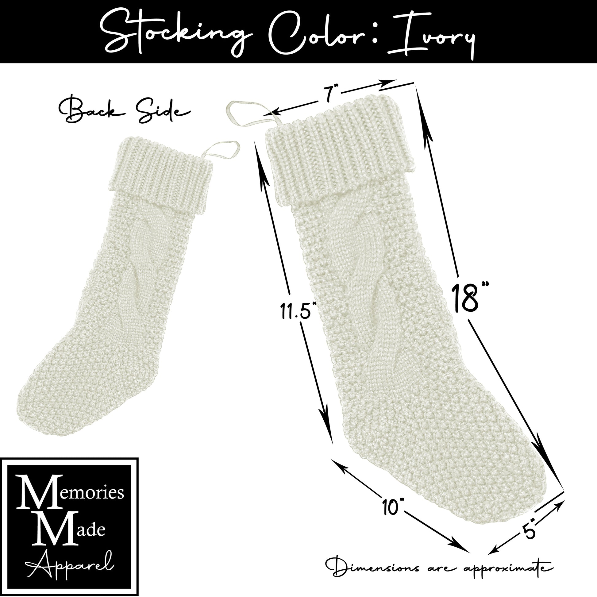 These beautiful 18” knit embroidered family Christmas stockings are available in the colors ivory, dark green, and wine red. With 10 font options and over 30 thread colors to choose from, you are sure to find stockings that will fit in perfectly with your Christmas décor. Paw prints, cat whiskers, and fish bones can be added to stockings for cats and dogs.